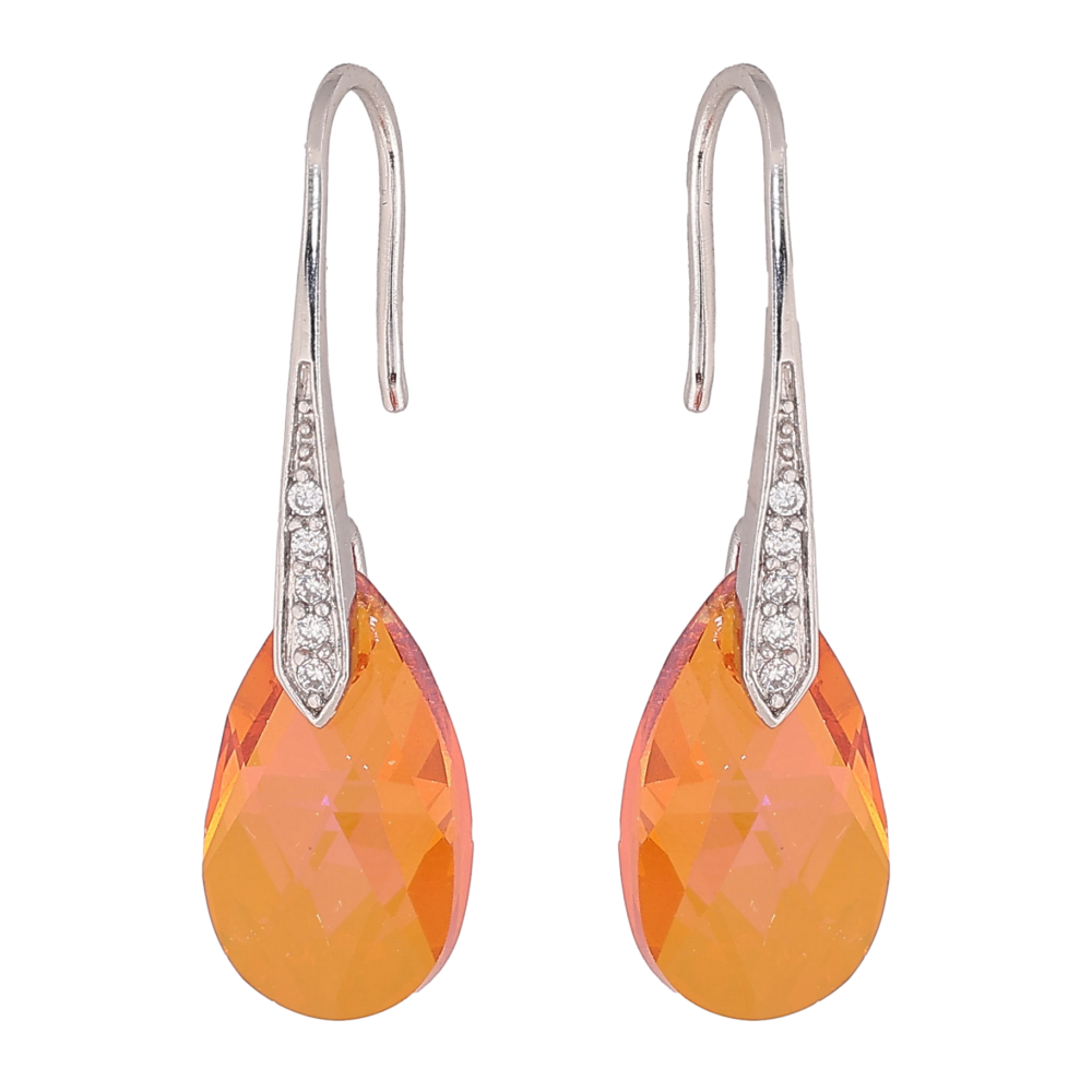 Серьги Xuping цвет Родий с кристаллами Swarovski французский замок "Кристальная капелька Tangerine"