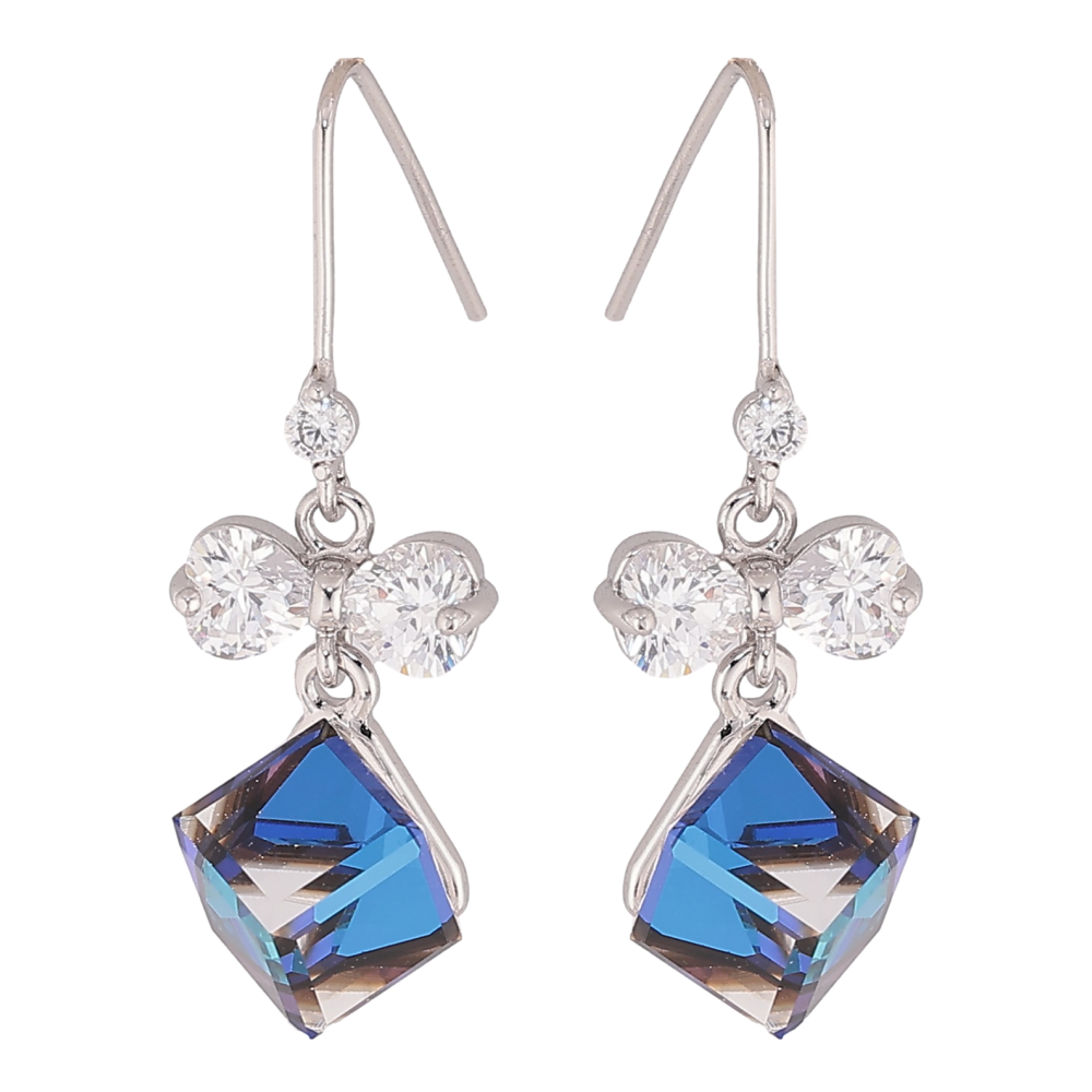 Серьги Xuping цвет Родий с кристаллами Swarovski французский замок "Кристальные кубики Bermuda Blue с бантами"