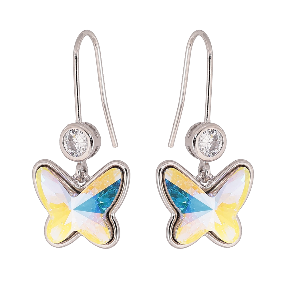 Серьги Xuping цвет Родий с кристаллами Swarovski французский замок "Бабочка кристалл АВ"