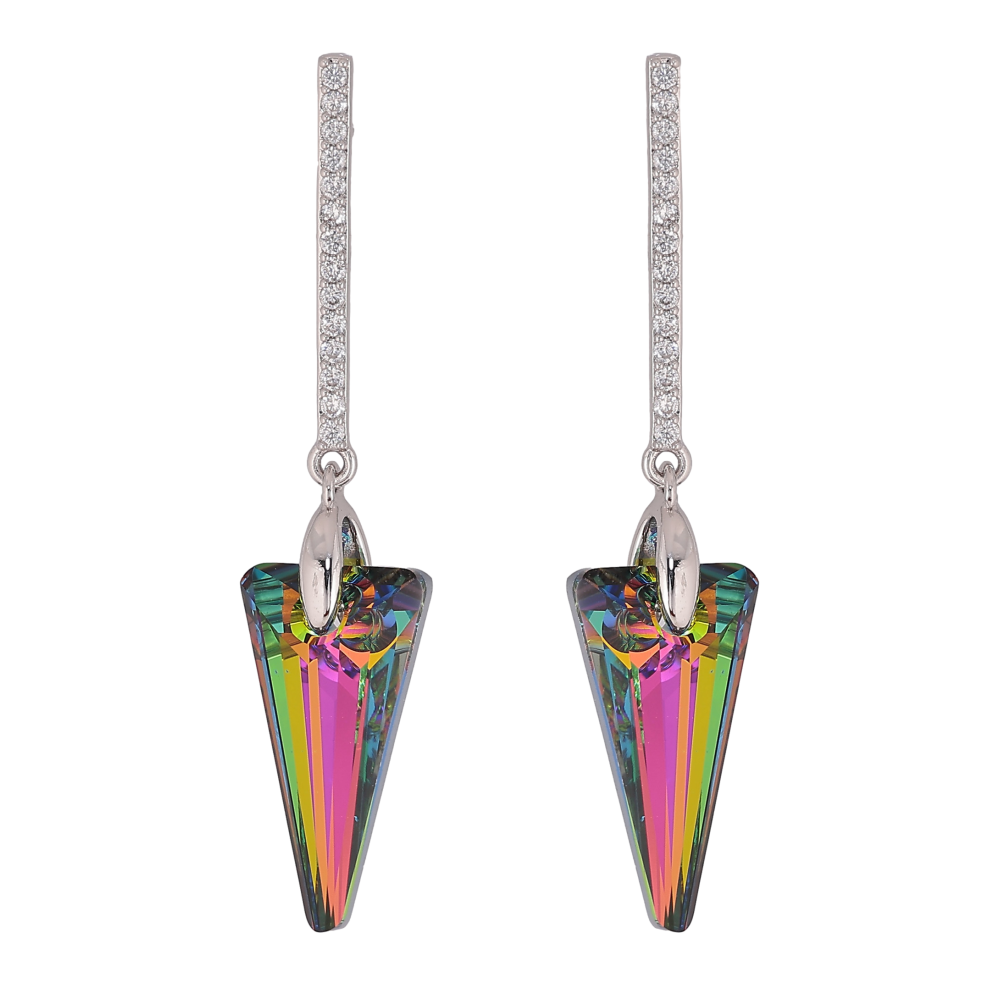 Серьги Xuping цвет Родий с кристаллами Swarovski пусеты "Дорожки кристаллов с кристаллами Vitrail Medium"