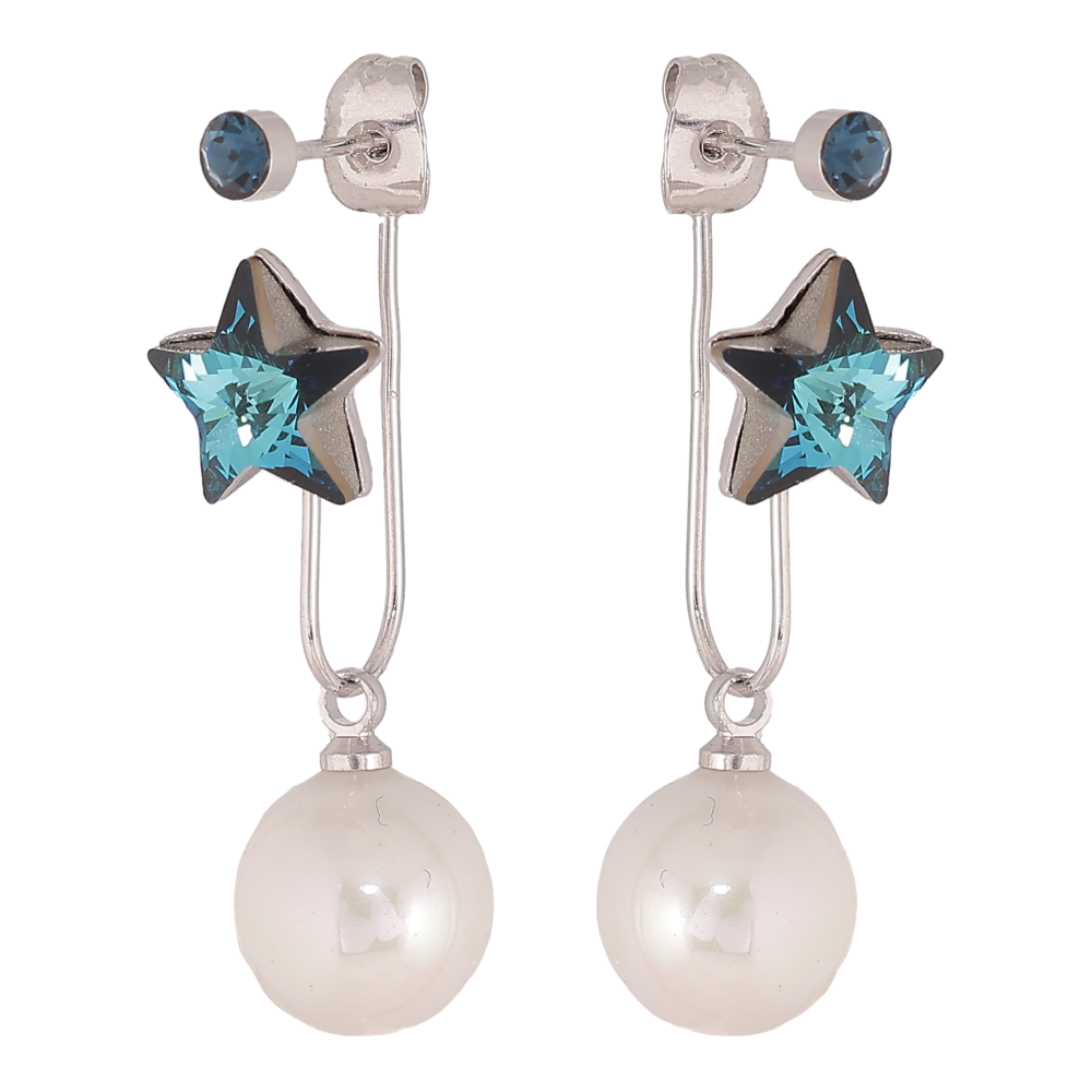 Серьги Xuping цвет Родий с кристаллами Swarovski пусеты- джекеты "Звездочки Metallic Blue с жемчужинами"