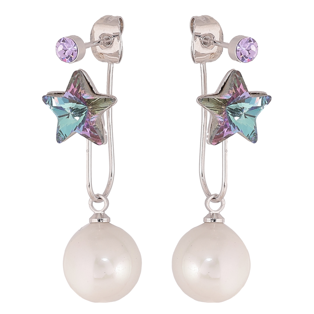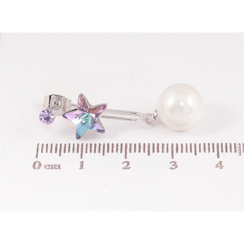 Серьги Xuping цвет Родий с кристаллами Swarovski пусеты-джекеты "Звездочки Paradise Shine с жемчужинами"
