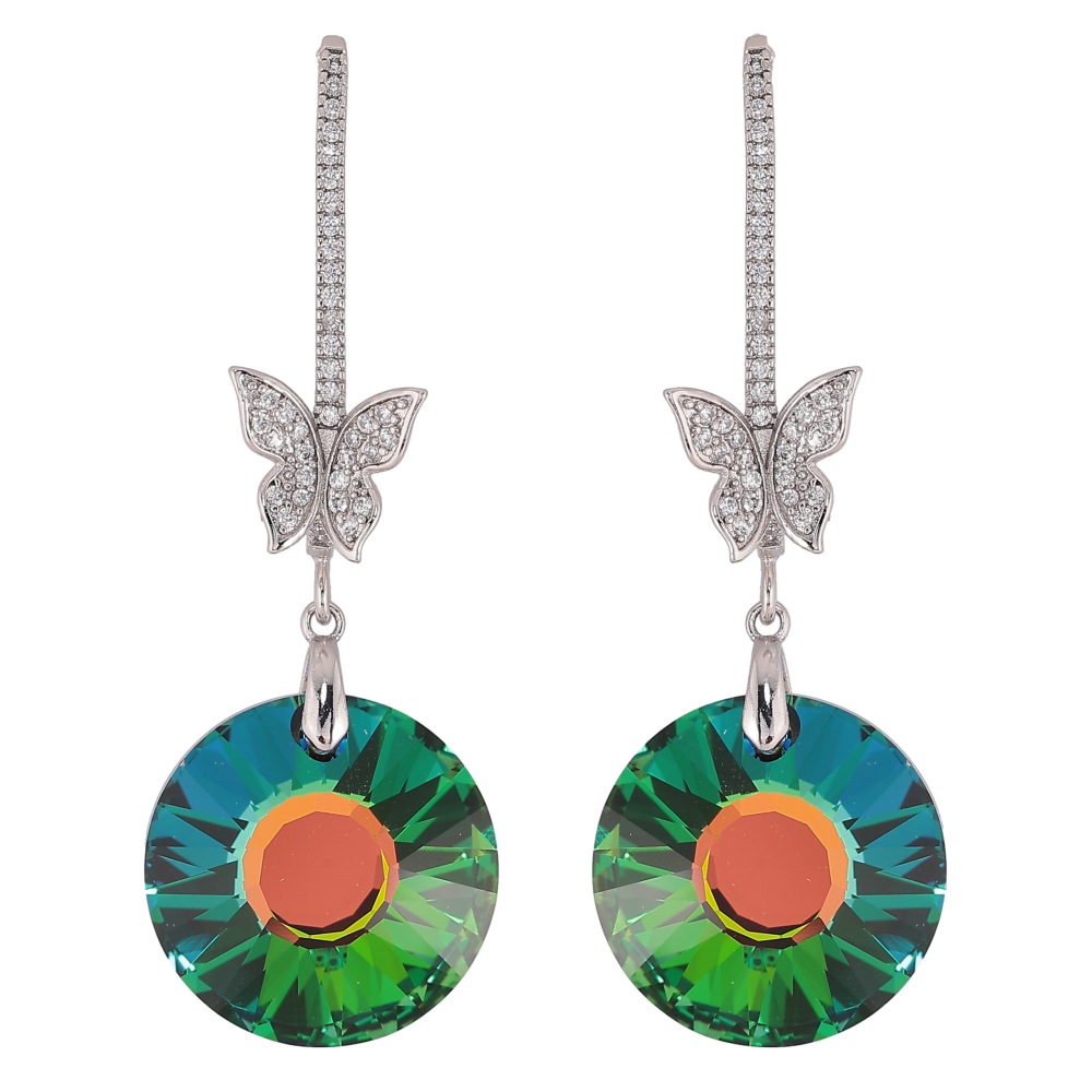 Серьги Xuping цвет Родий с кристаллами Swarovski пусеты "Кристальные дуги с бабочками и подвесками Vitrail Medium"