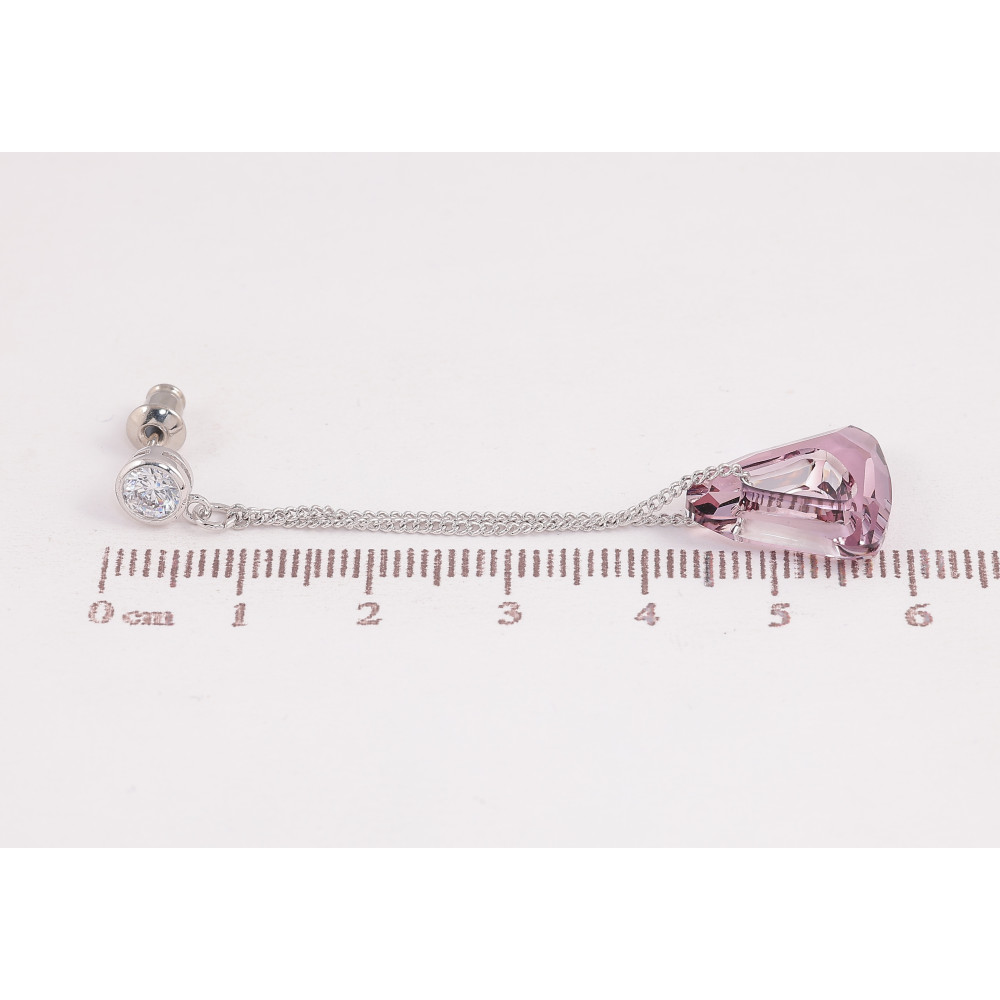 Серьги Xuping цвет Родий с кристаллами Swarovski пусеты "Кристальный треугольник Amethyst на цепочке"