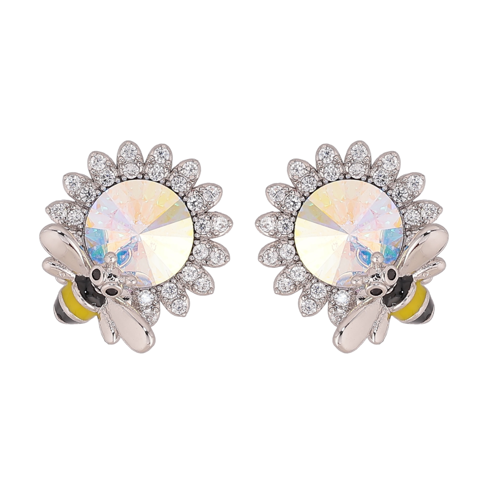 Серьги Xuping цвет Родий с кристаллами Swarovski пусеты "Цветочки с кристаллом АВ и пчелой"