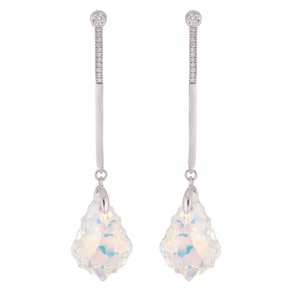 Серьги Xuping цвет Родий с кристаллами Swarovski пусеты "Подвески с кристаллом Shimmer в огранке Baroque"