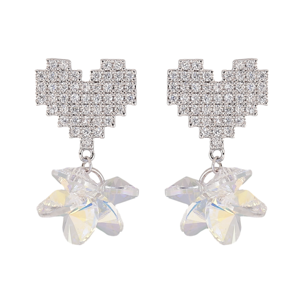 Серьги Xuping цвет Родий с кристаллами Swarovski пусеты "Сердечки с кристаллами и подвесками"