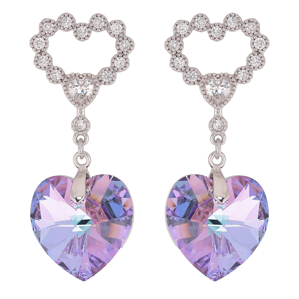 Серьги Xuping цвет Родий с кристаллами Swarovski пусеты "Сердечки с подвеской кристалл Paradise Shine"