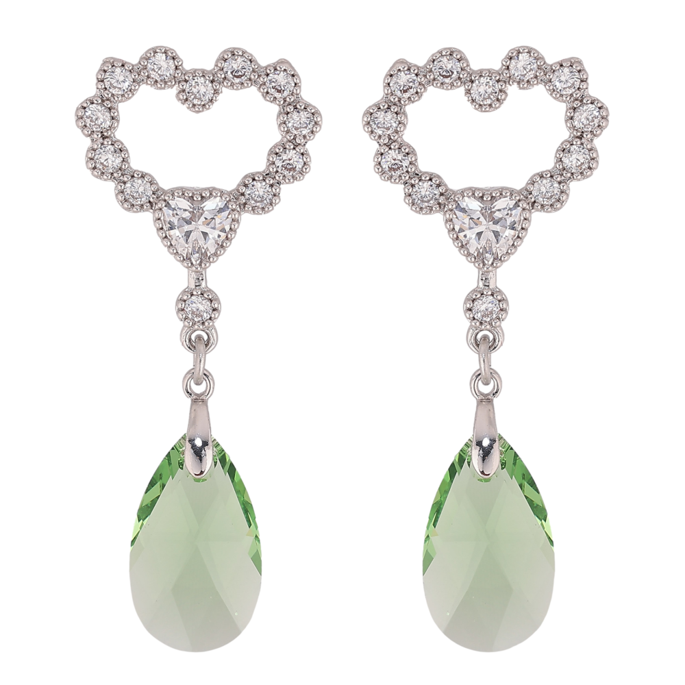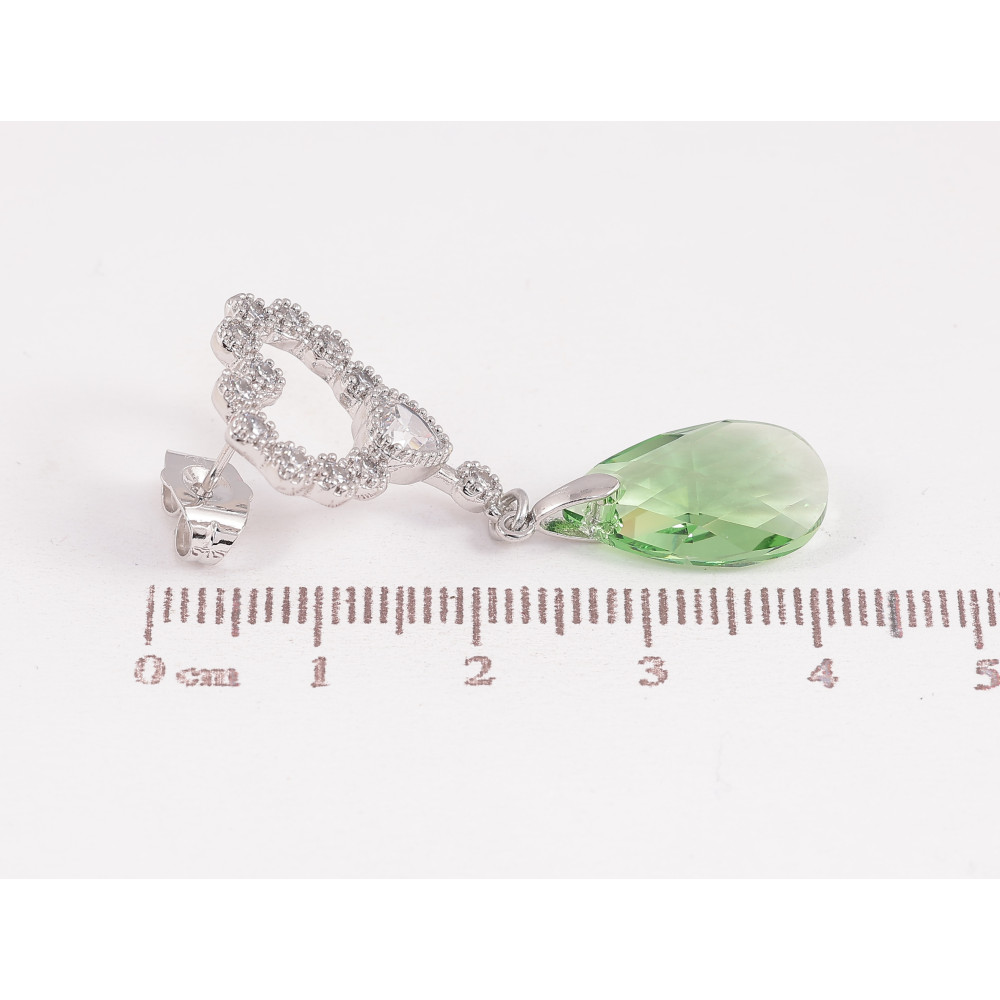 Серьги Xuping цвет Родий с кристаллами Swarovski пусеты "Сердечки с подвеской кристалл Peridot"