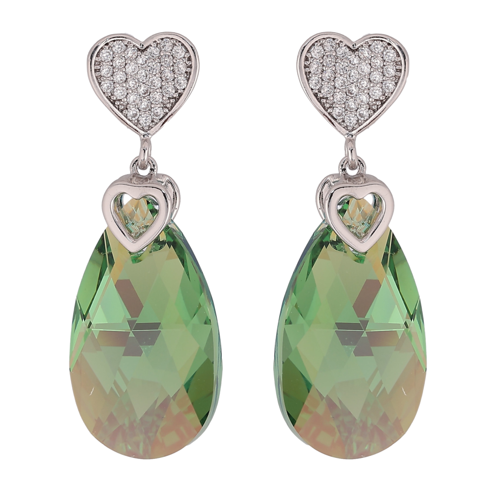Серьги Xuping цвет Родий с кристаллами Swarovski пусеты "Сердце с кристальной подвеской Erinite"