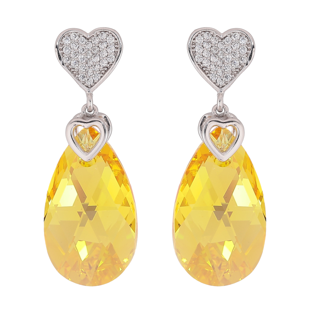Серьги Xuping цвет Родий с кристаллами Swarovski пусеты "Сердце с кристальной подвеской Sunflower"