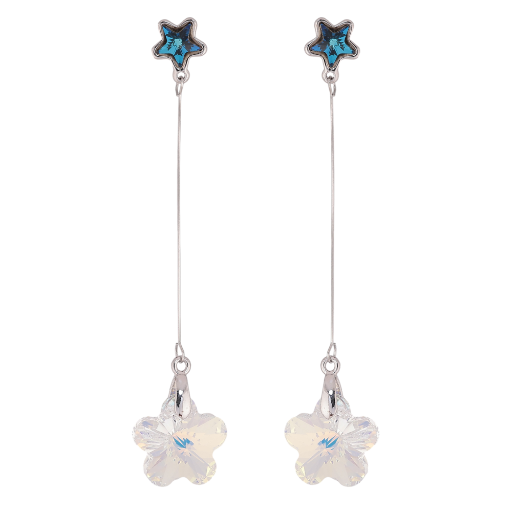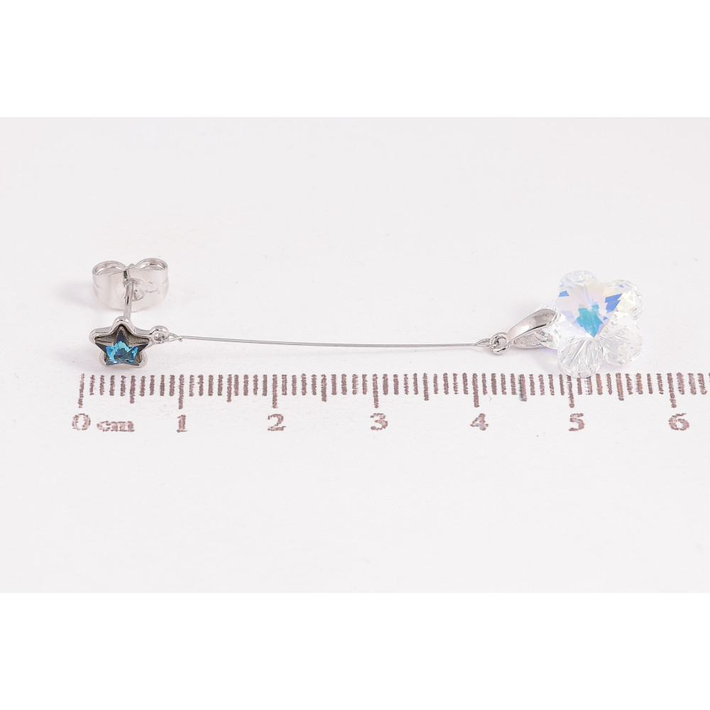 Серьги Xuping цвет Родий с кристаллами Swarovski пусеты "Синие звездочки с подвесками цветочки Shimmer"