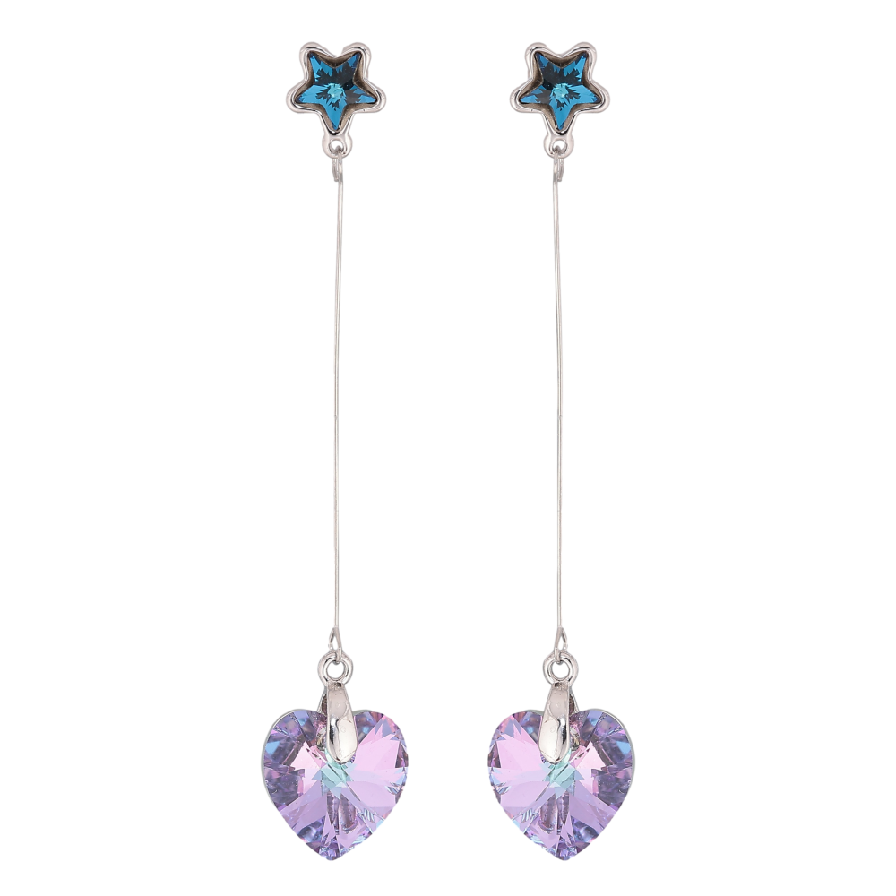 Серьги Xuping цвет Родий с кристаллами Swarovski пусеты "Синие звездочки с подвесками сердечки Paradise Shine"