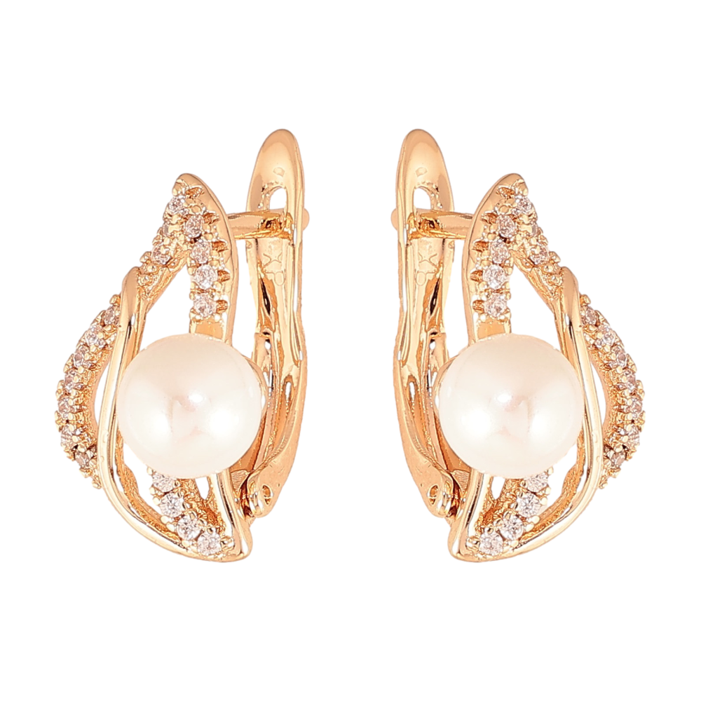 Серьги Xuping M&L цвет 18K английский замок "Узор с кристаллами и жемчужинами"