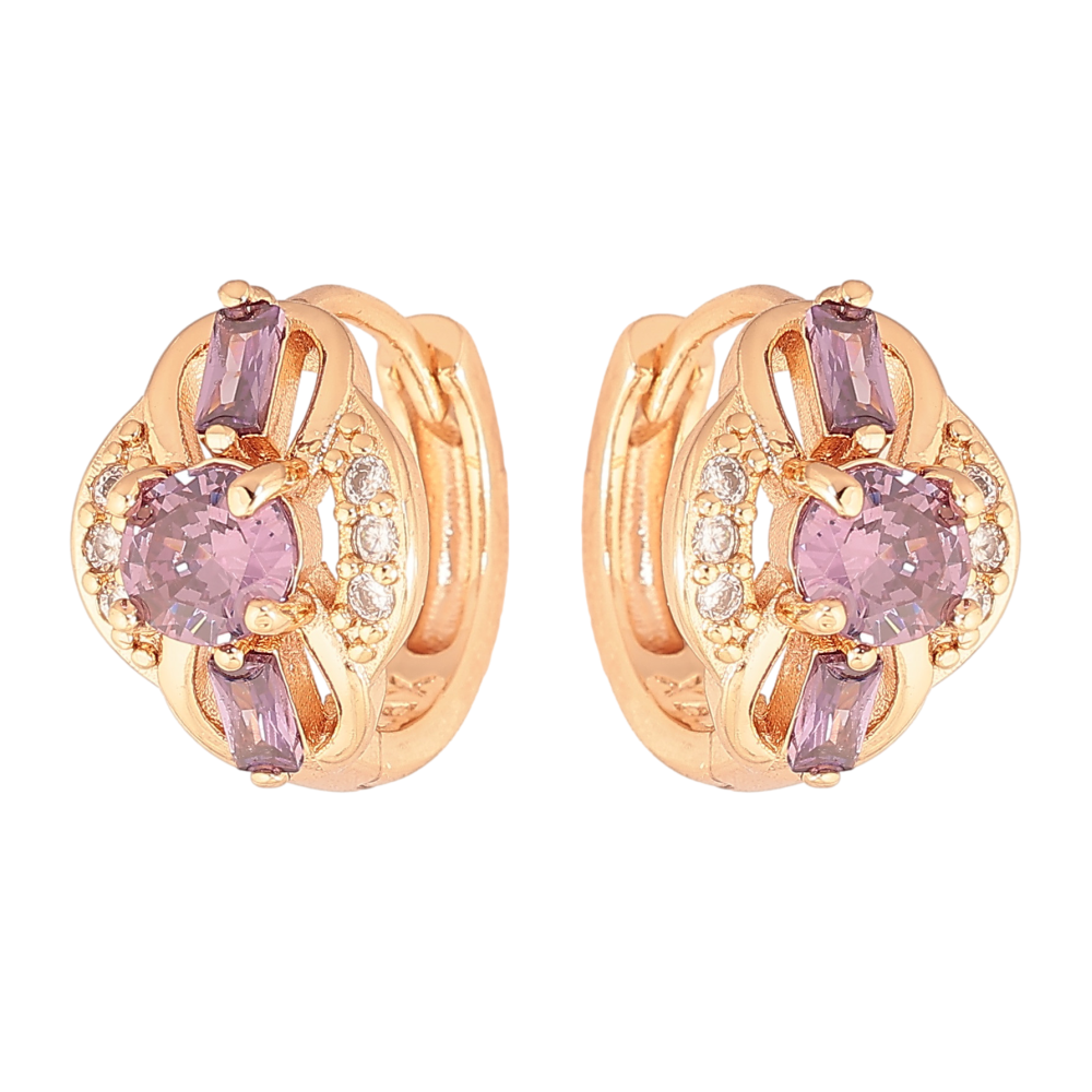Серьги Xuping M&L цвет 18K колечки "Узор с сиреневыми кристаллами"