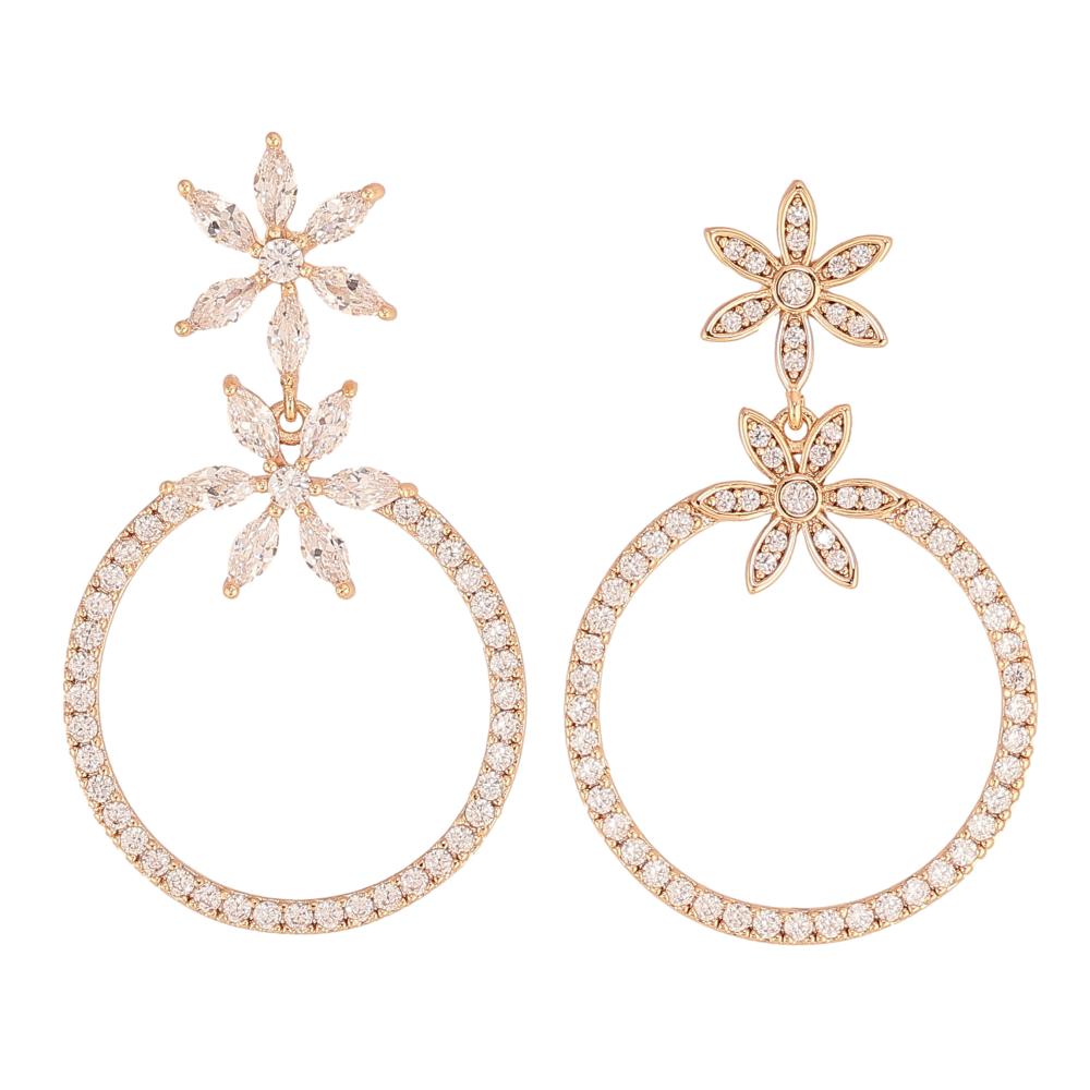 Серьги Xuping M&L цвет 18K пусеты "Ассиметричные кристальные цветочки с кольцами"