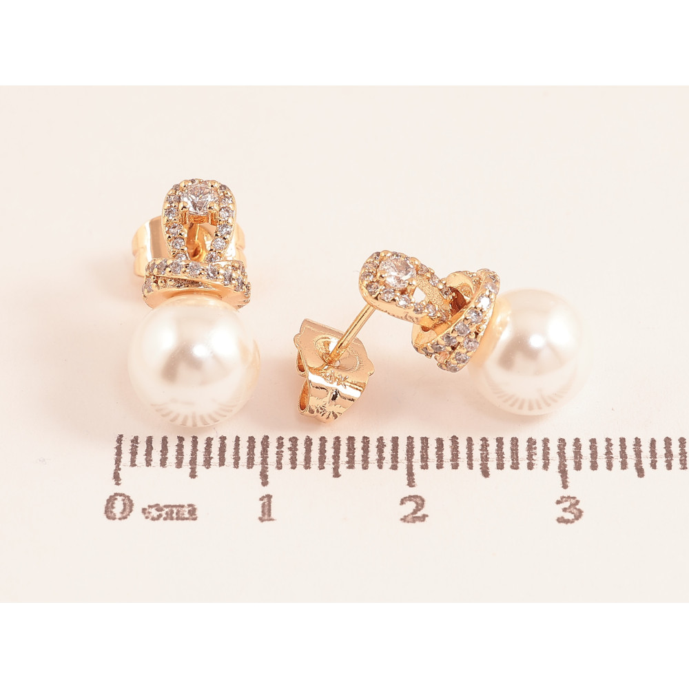 Серьги Xuping M&L цвет 18K пусеты "Жемчужины с кристальными петельками"