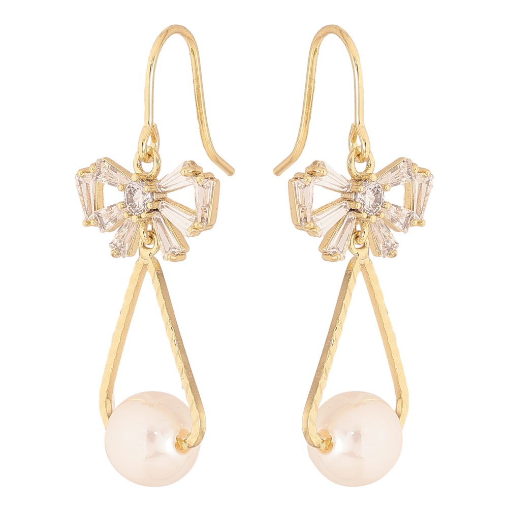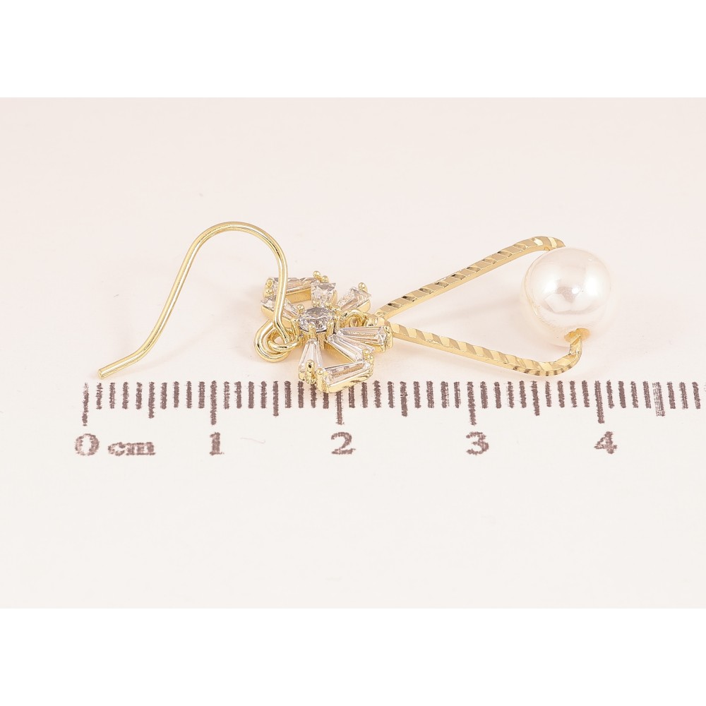 Серьги Xuping QQMM цвет Позолота 14K французский замок "Кристальные бантики с жемчужными подвесками"