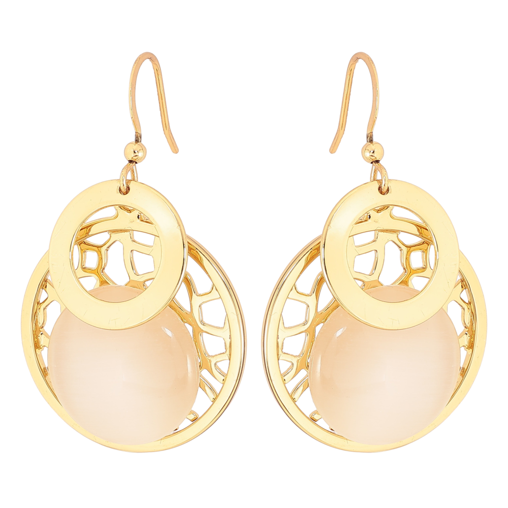Серьги Xuping QQMM цвет Позолота 14K французский замок "Резные кольца с камнем Кошачий глаз"