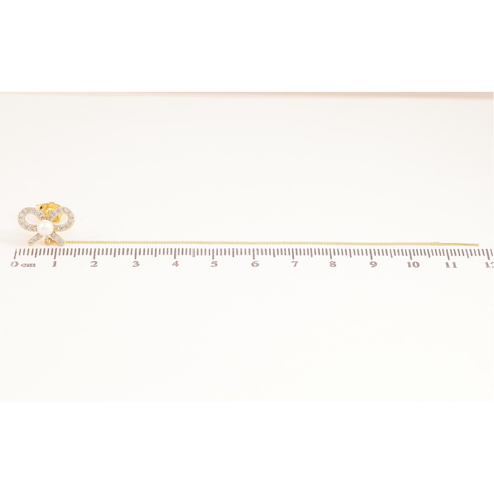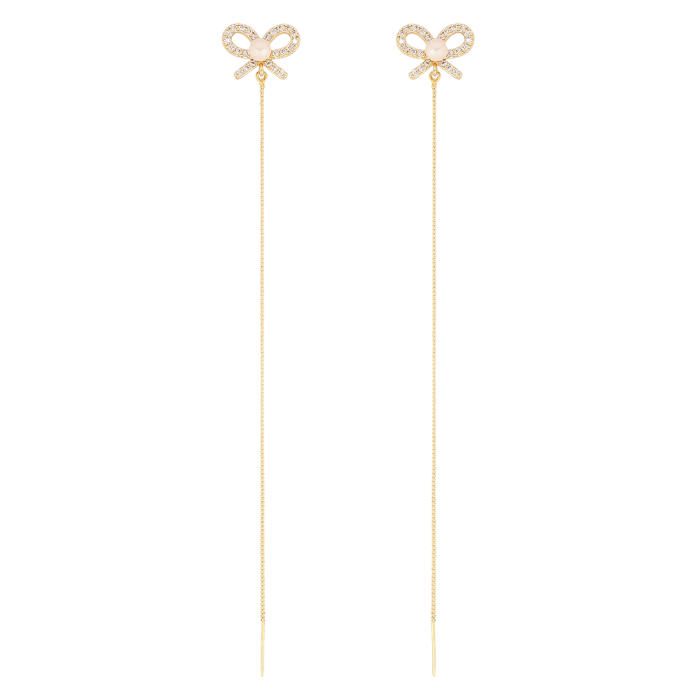 Серьги Xuping QQMM цвет Позолота 14K пусеты "Бантики с подвесками цепочками"