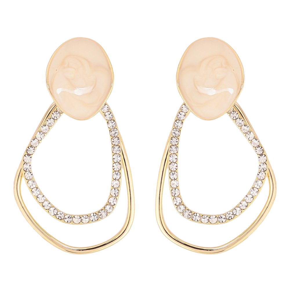 Серьги Xuping QQMM цвет Позолота 14K пусеты "Фигурные петельки с цирконием и перламутровой прокраской"