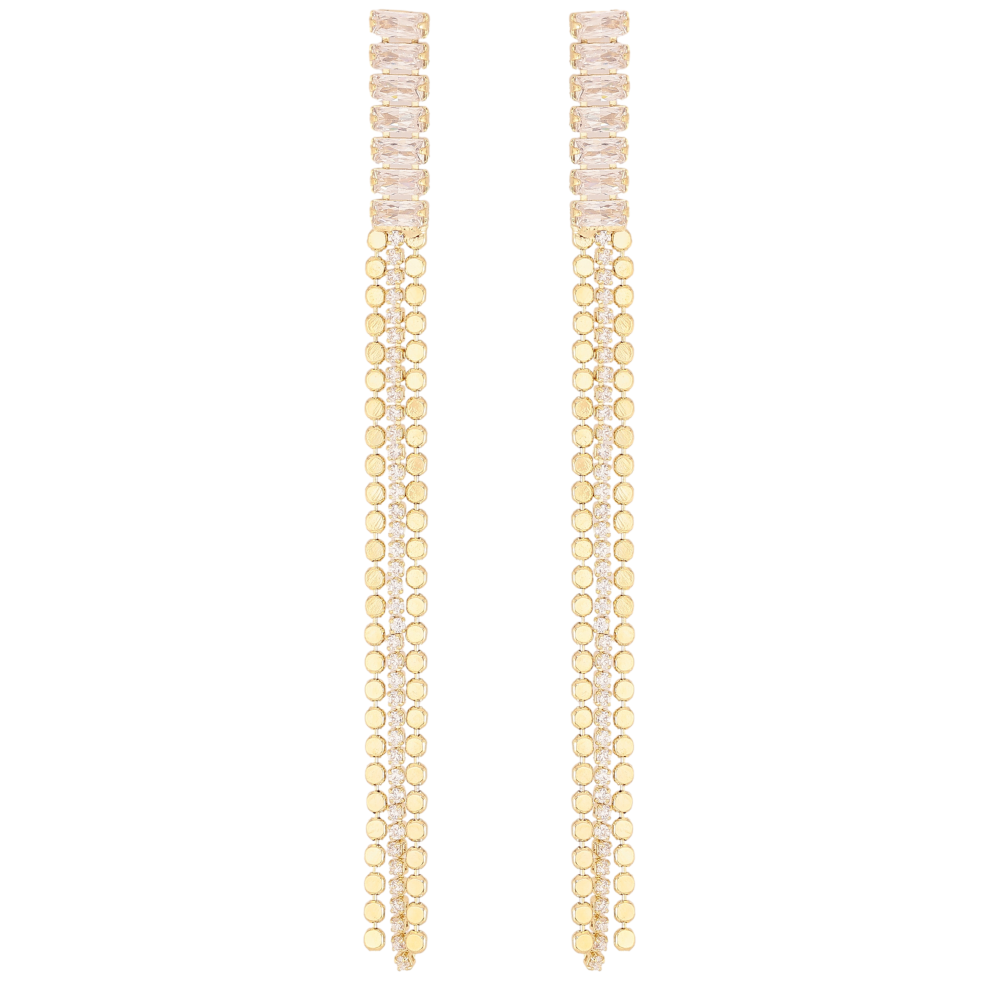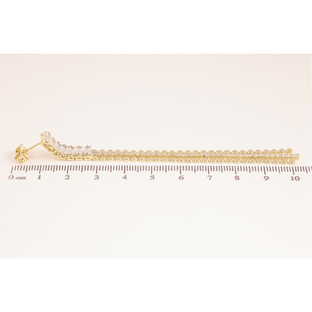 Серьги Xuping QQMM цвет Позолота 14K пусеты "Кристальные дорожки с цепочками"