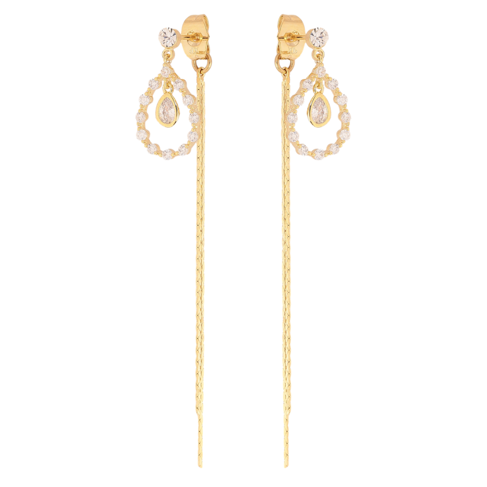 Серьги Xuping QQMM цвет Позолота 14K пусеты "Кристальные капельки с цепочками"