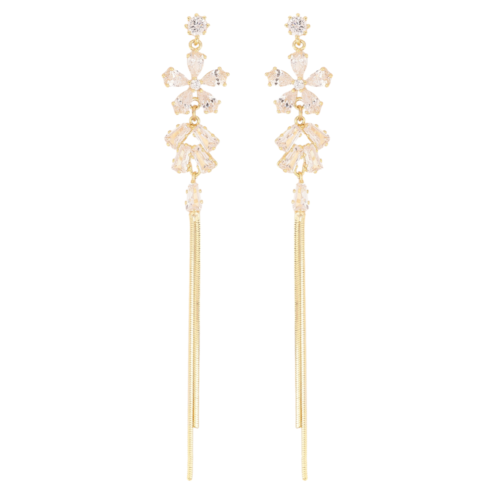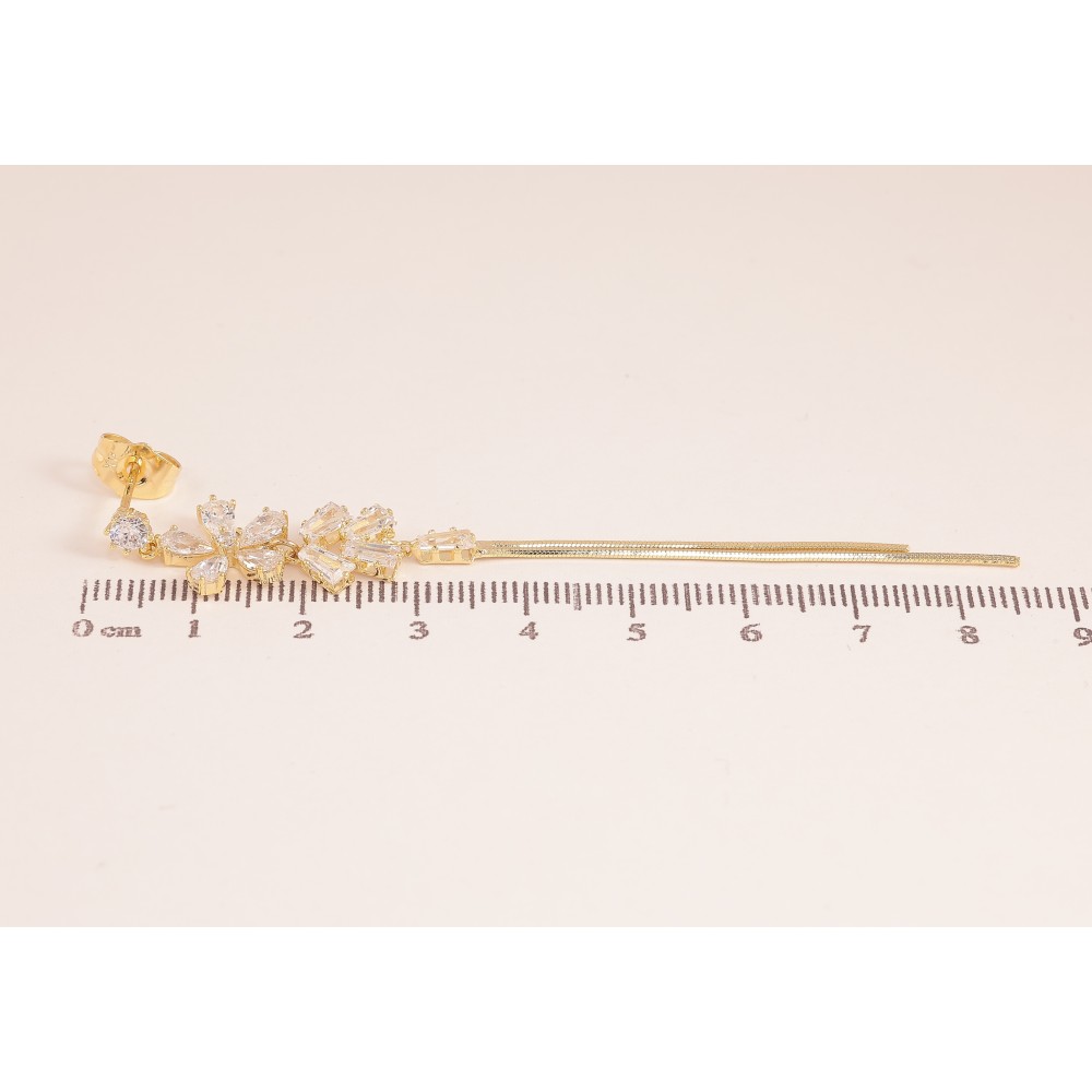Серьги Xuping QQMM цвет Позолота 14K пусеты "Кристальные цветочки с цепочками"