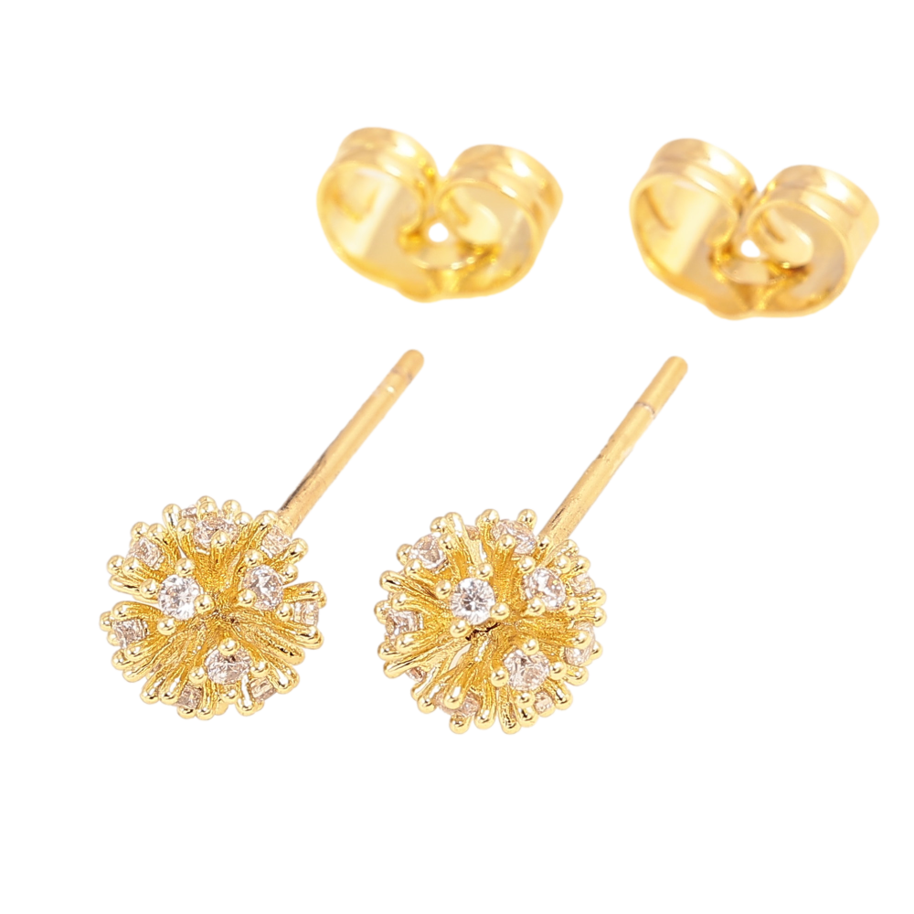 Серьги Xuping QQMM цвет Позолота 14K пусеты "Одуванчики с вставками кристаллов" ø 7мм