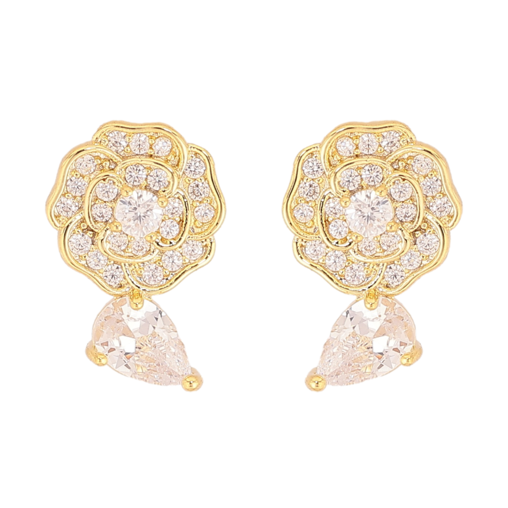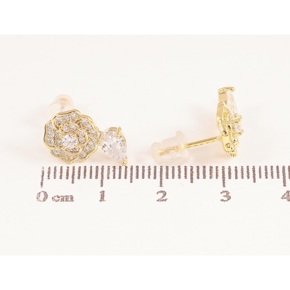 Серьги Xuping QQMM цвет Позолота 14K пусеты "Цветочки с кристаллами"