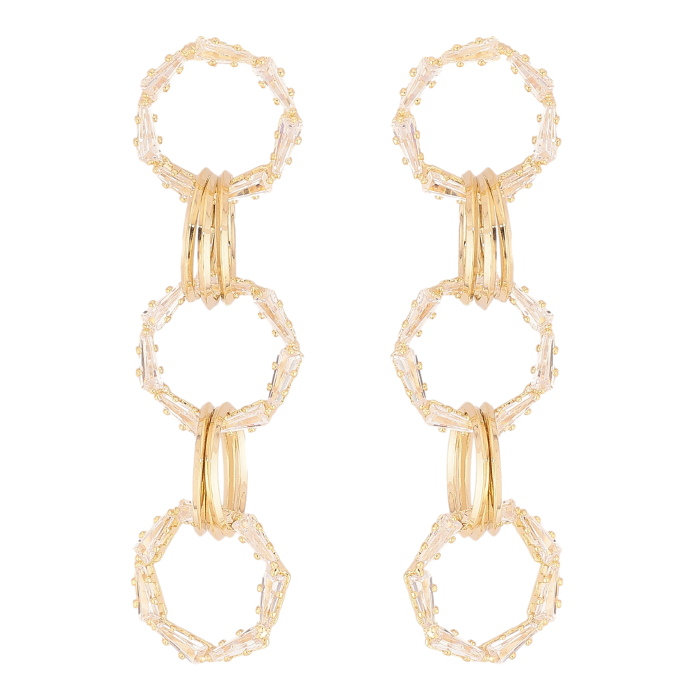 Серьги Xuping QQMM цвет Позолота 14K пусеты "Подвески из кристальных колечек"