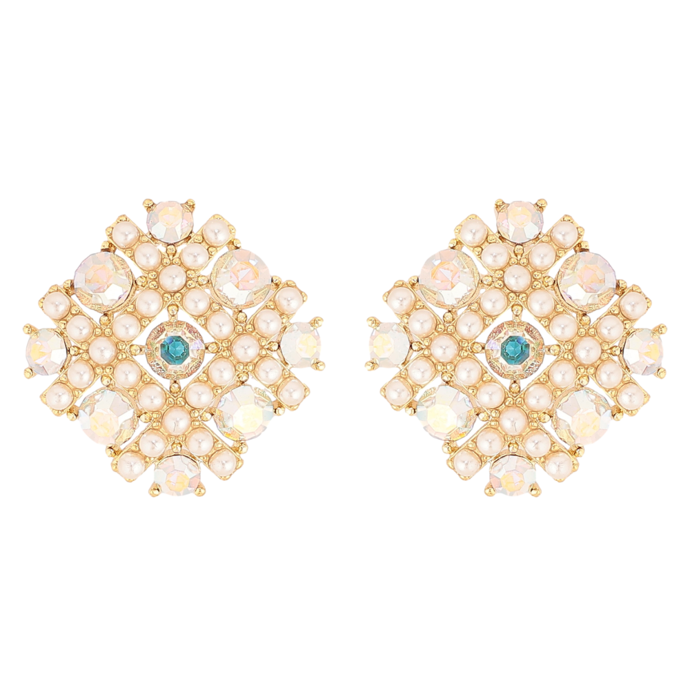Серьги Xuping QQMM цвет Позолота 14K пусеты "Изящные ромбы с россыпью кристаллов"