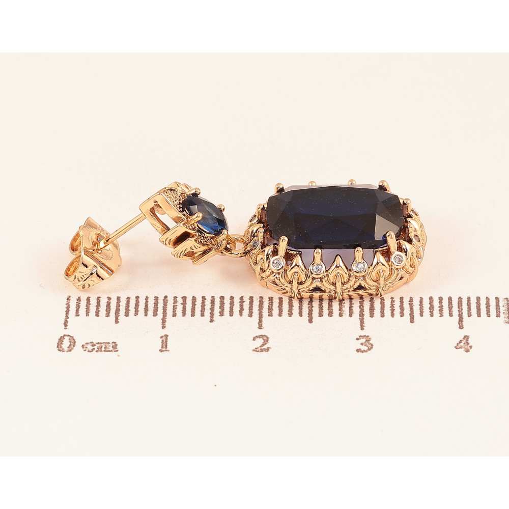 Серьги Xuping QQMM цвет Позолота 18K пусеты "Подвески с синими кристаллами"