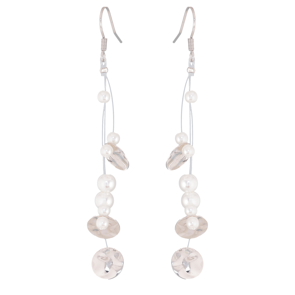 Серьги Xuping QQMM цвет Родий французский замок "Жемчужины и круги на леске"