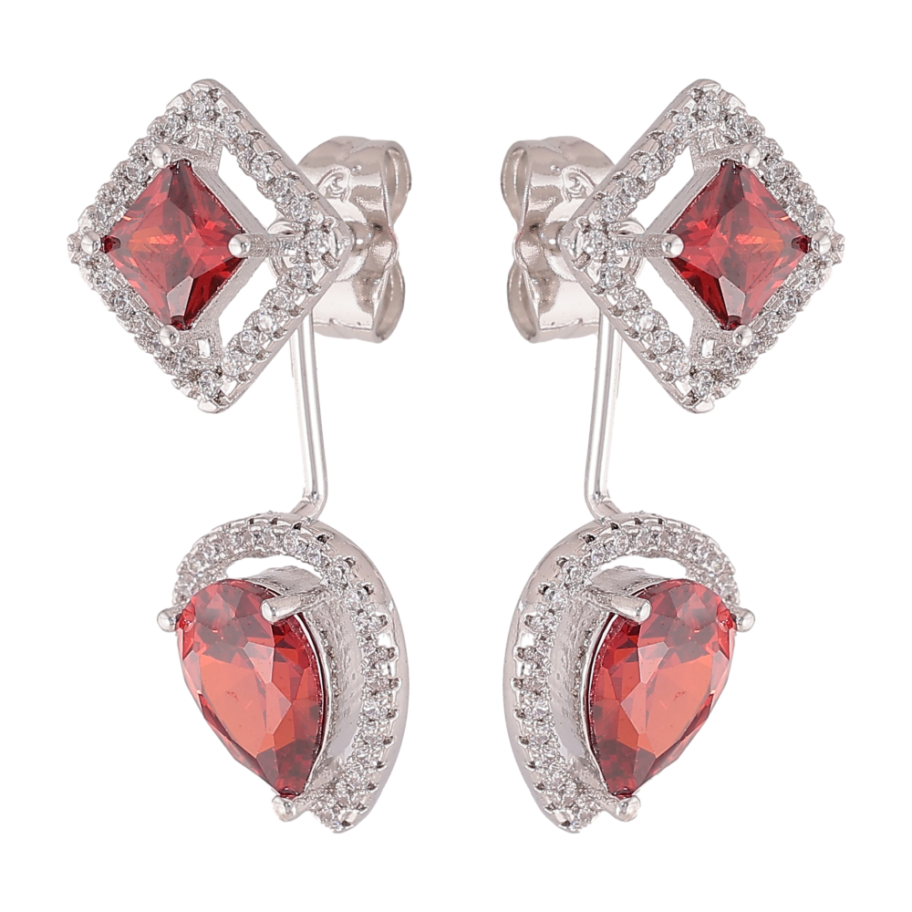 Серьги Xuping QQMM цвет Родий пусеты- джекеты "Красные кристаллы в обрамлении"