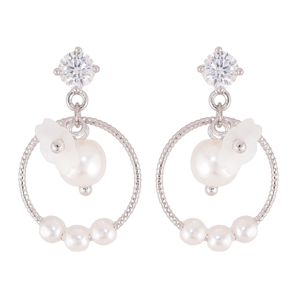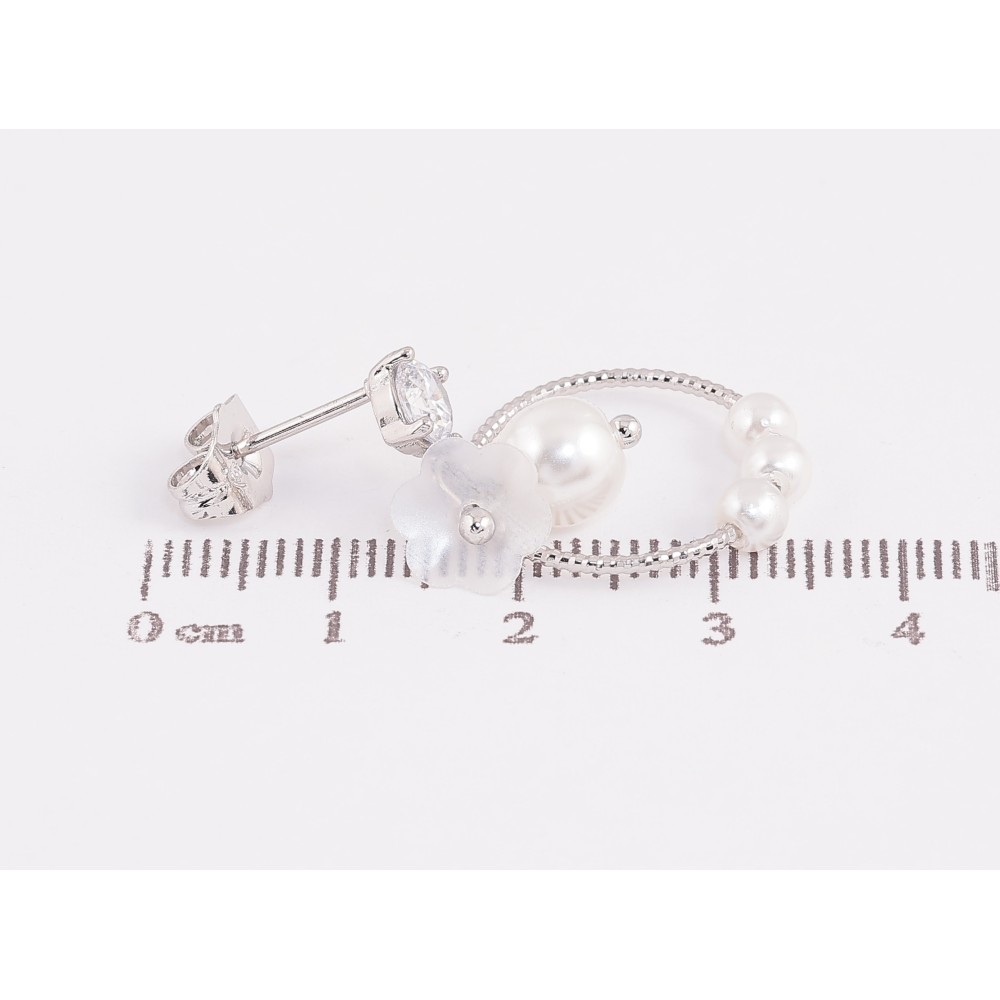 Серьги Xuping QQMM цвет Родий пусеты "Колечки с жемчужными бусинами и цветочками"