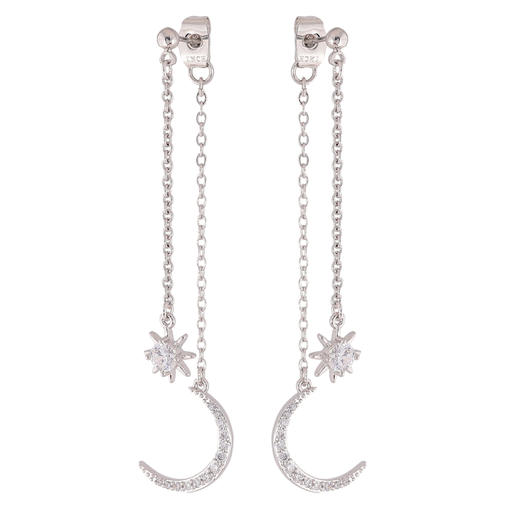 Серьги Xuping QQMM цвет Родий пусеты "Подвески полумесяц со звездой"