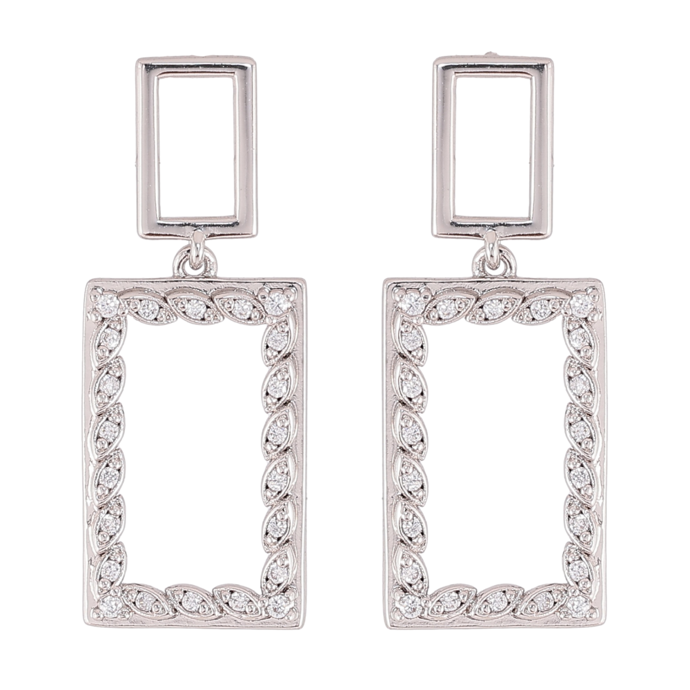 Серьги Xuping QQMM цвет Родий пусеты "Прямоугольные подвески с кристаллами"