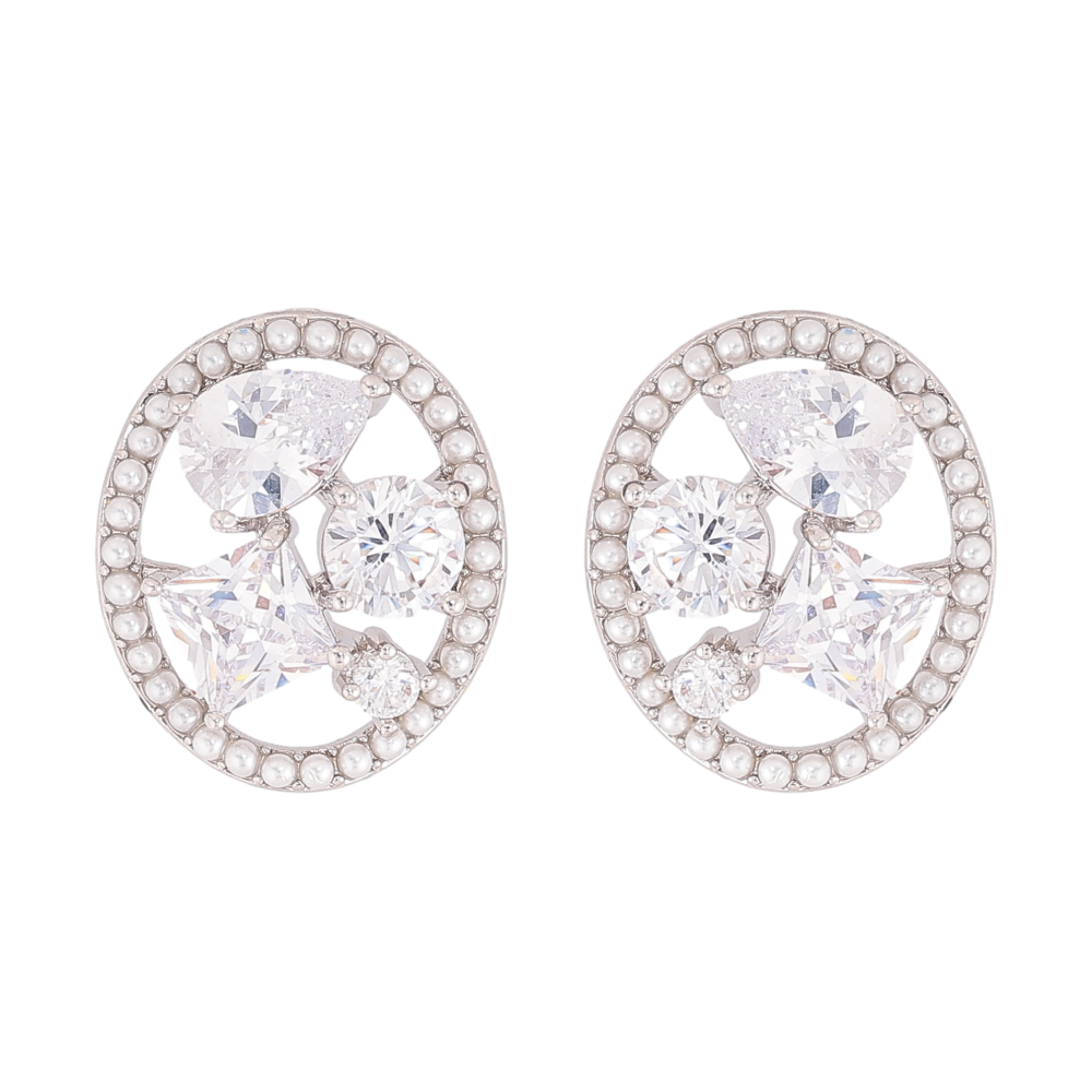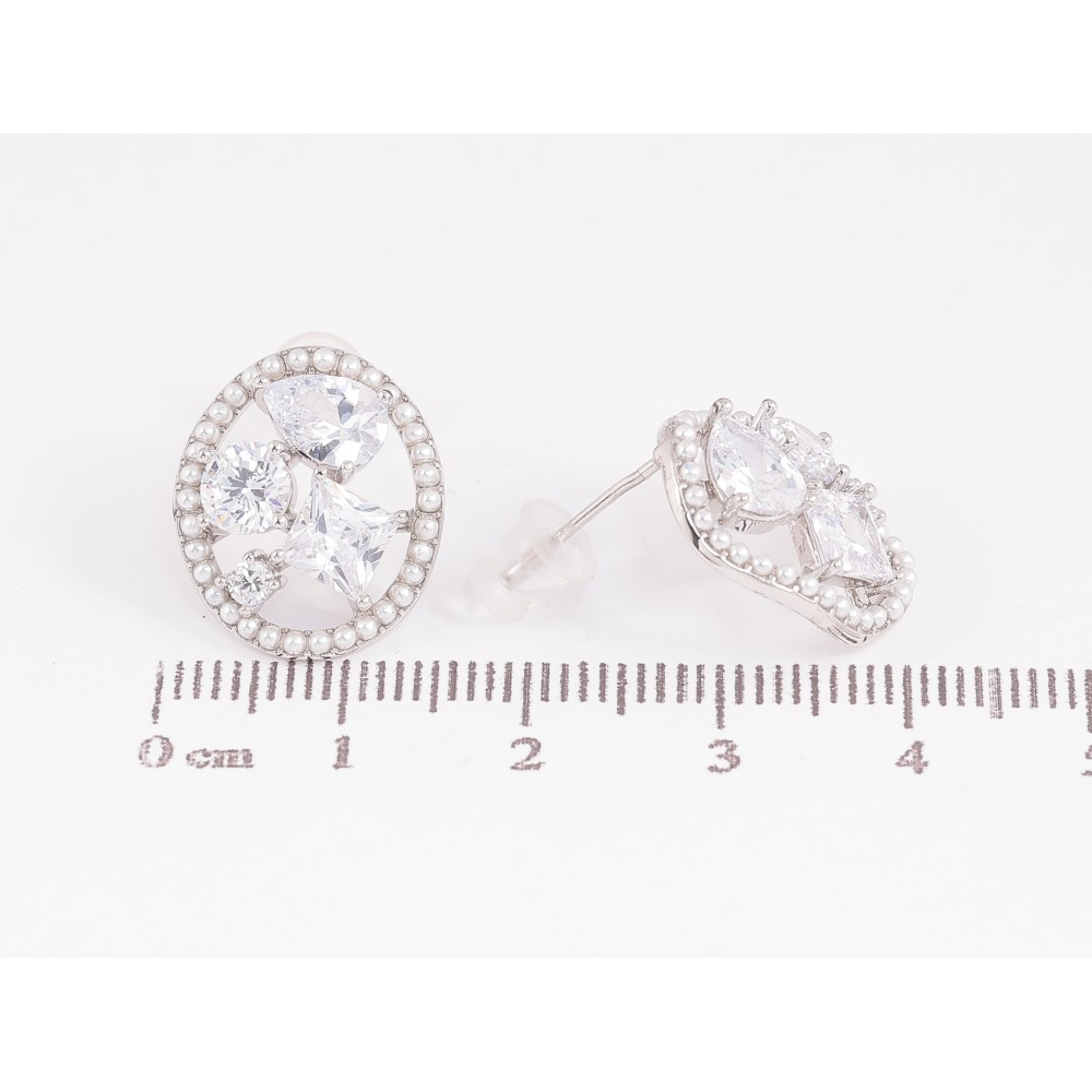 Серьги Xuping QQMM цвет Родий пусеты "Россыпь кристаллов в жемчужных колечках"