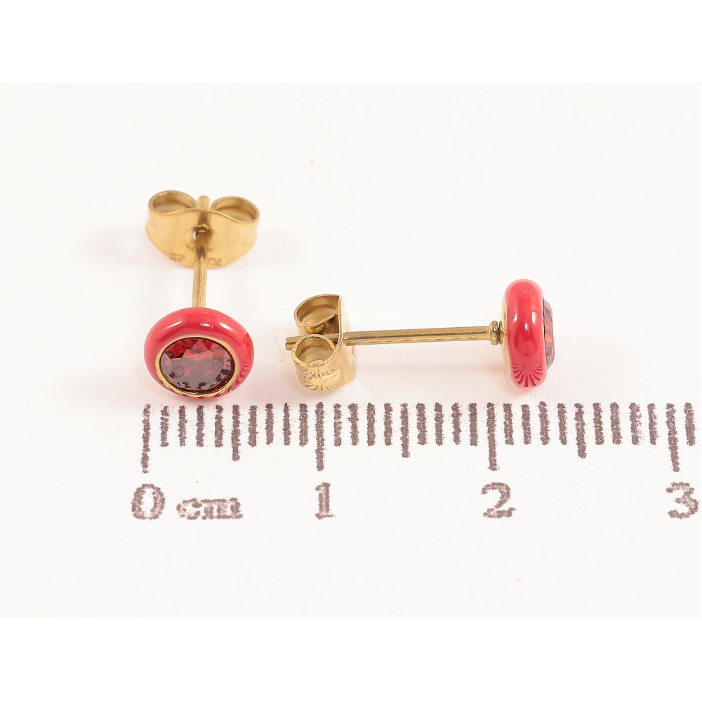Серьги Xuping TTM Stainless Steel цвет 14К пусеты красные кристаллы с эмалью ø 6мм