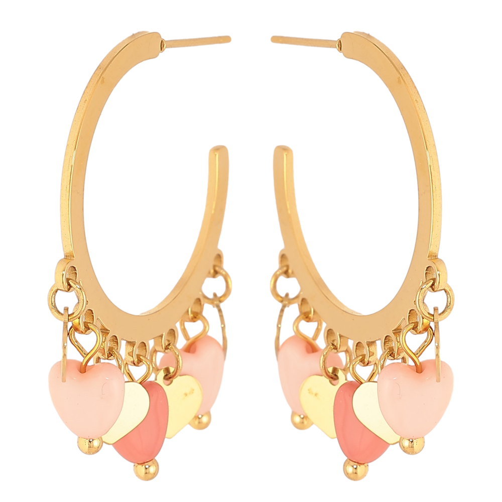 Серьги Xuping TTM Stainless Steel цвет 14К пусеты "Дуги с цветными сердечками"