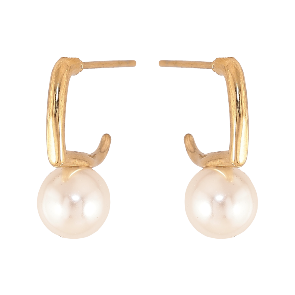 Серьги Xuping TTM Stainless Steel цвет 14К пусеты "Дужки с жемчужинами"