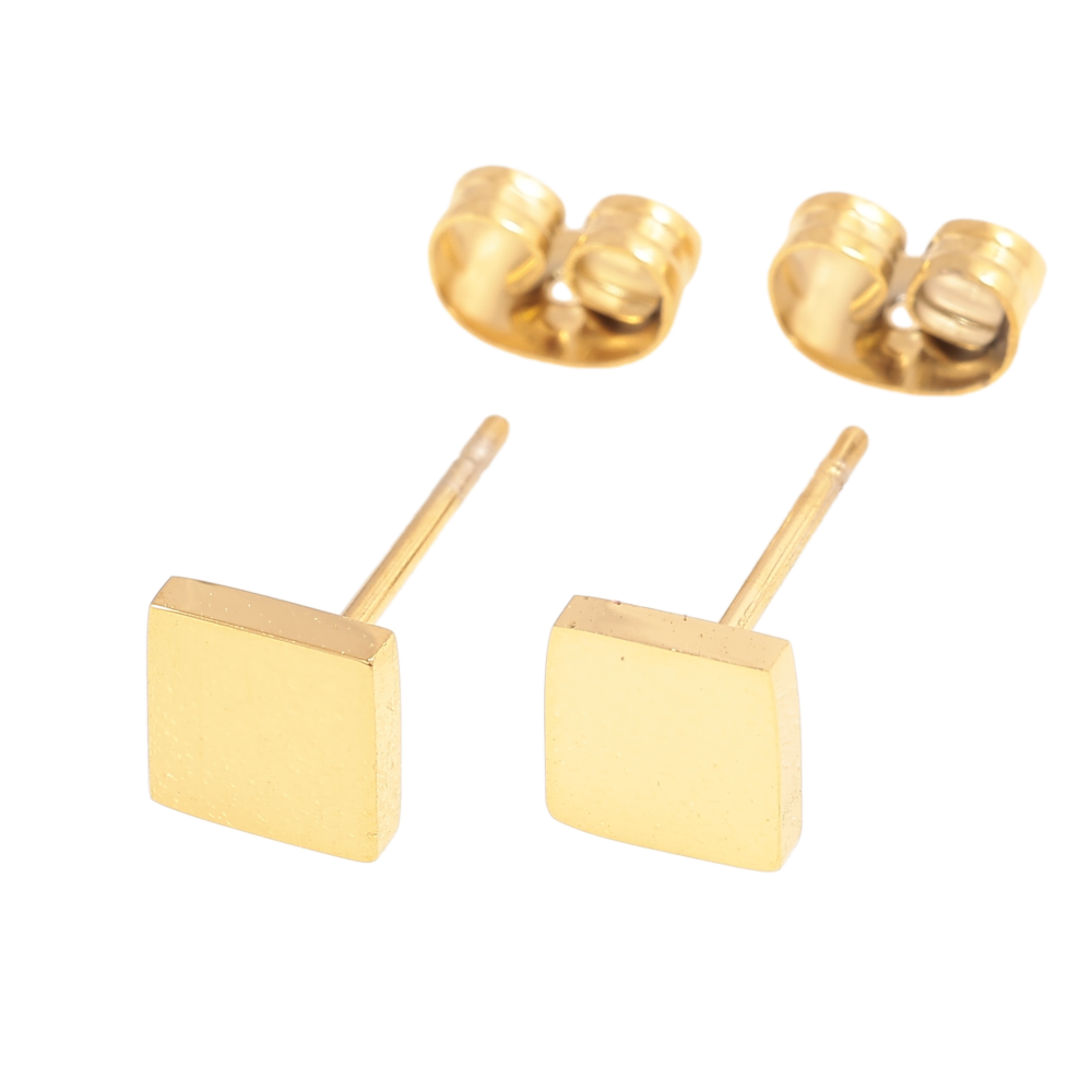 Серьги Xuping TTM Stainless Steel цвет 14К пусеты квадраты 6х6мм