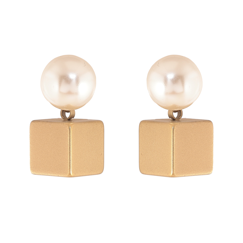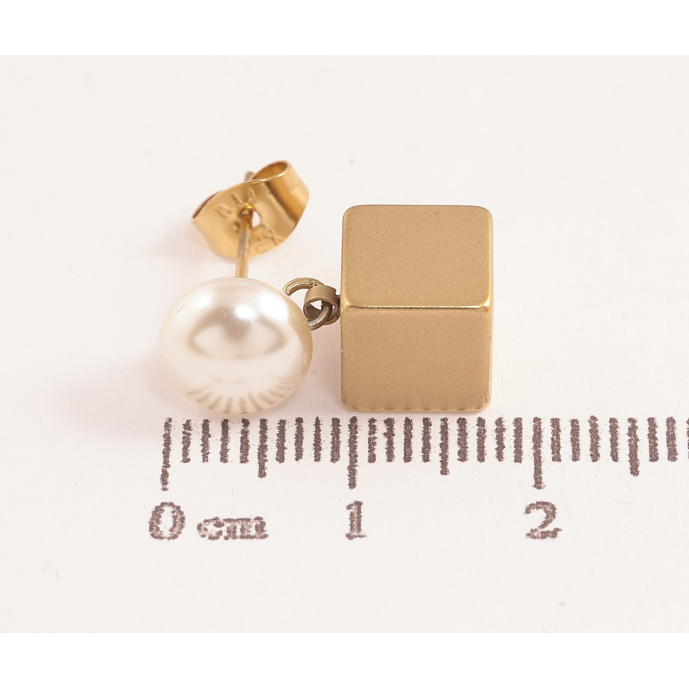 Серьги Xuping TTM Stainless Steel цвет 14К пусеты жемчужины с кубиками