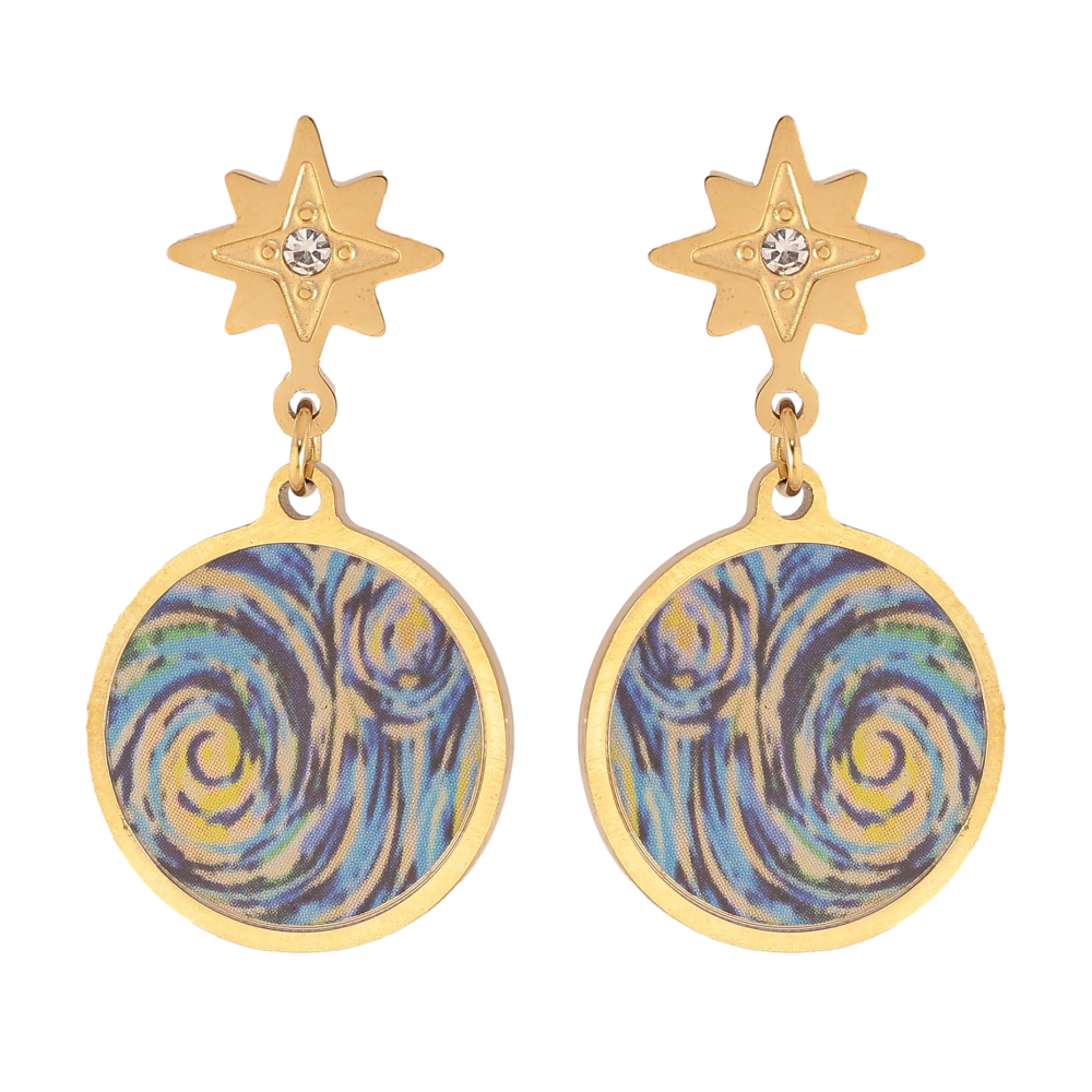 Серьги Xuping TTM Stainless Steel цвет 14К пусеты "Подвески с цветными вставками"