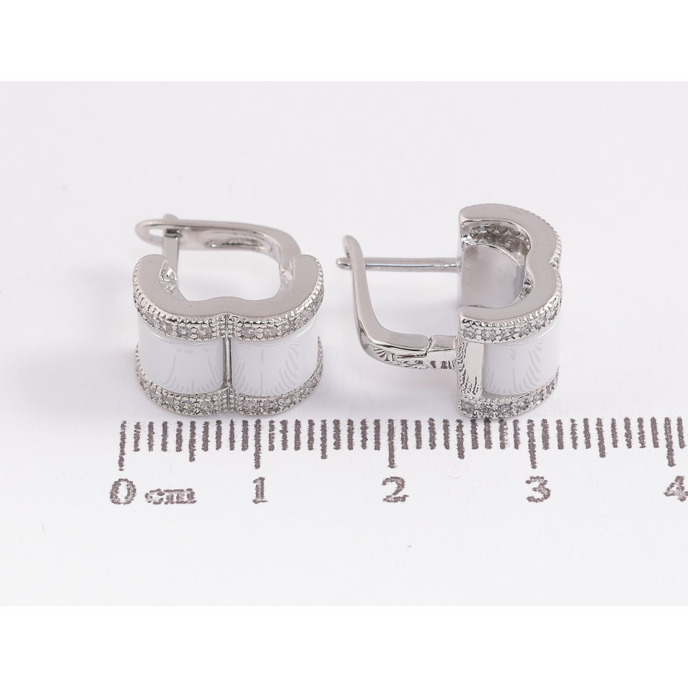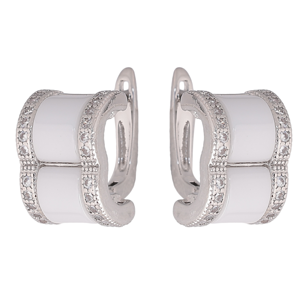 Серьги Xuping TTM Stainless Steel цвет Родий английский замок "Узор с белой керамикой и кристаллами"