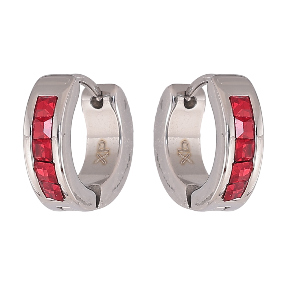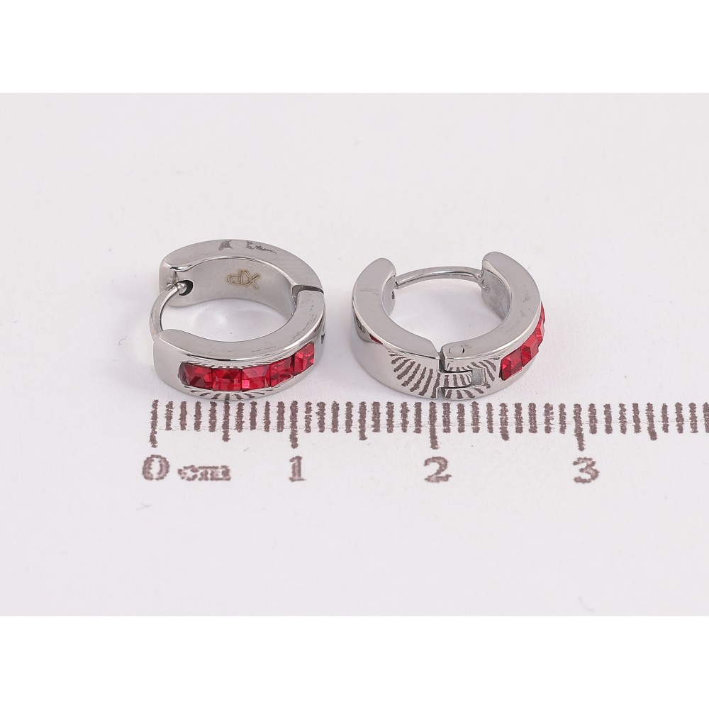 Серьги Xuping TTM Stainless Steel цвет Родий колечки "Дорожки красных кристаллов"