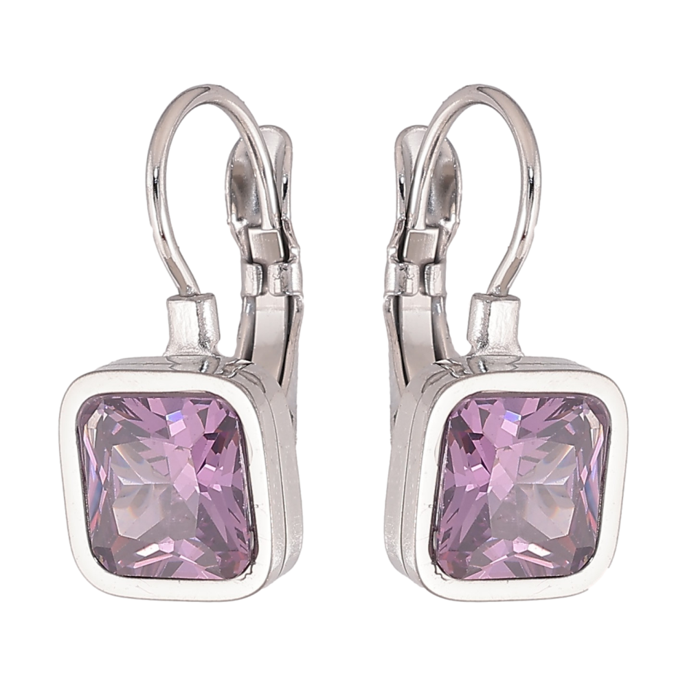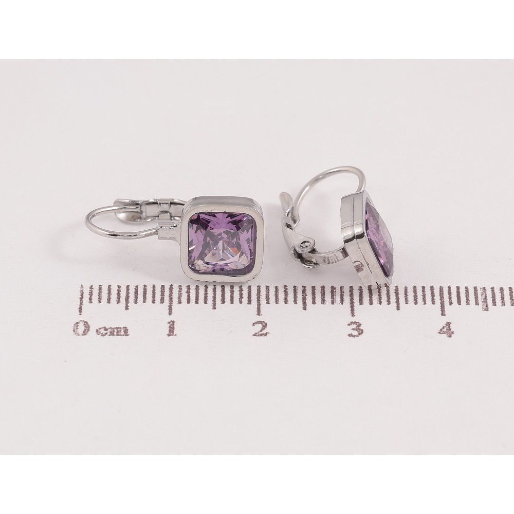 Серьги Xuping TTM Stainless Steel цвет Родий французский замок "Сиреневые кристаллы" 9х9мм