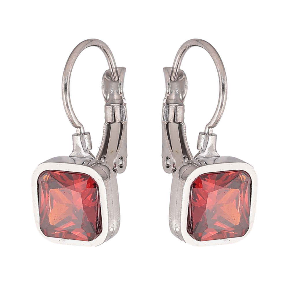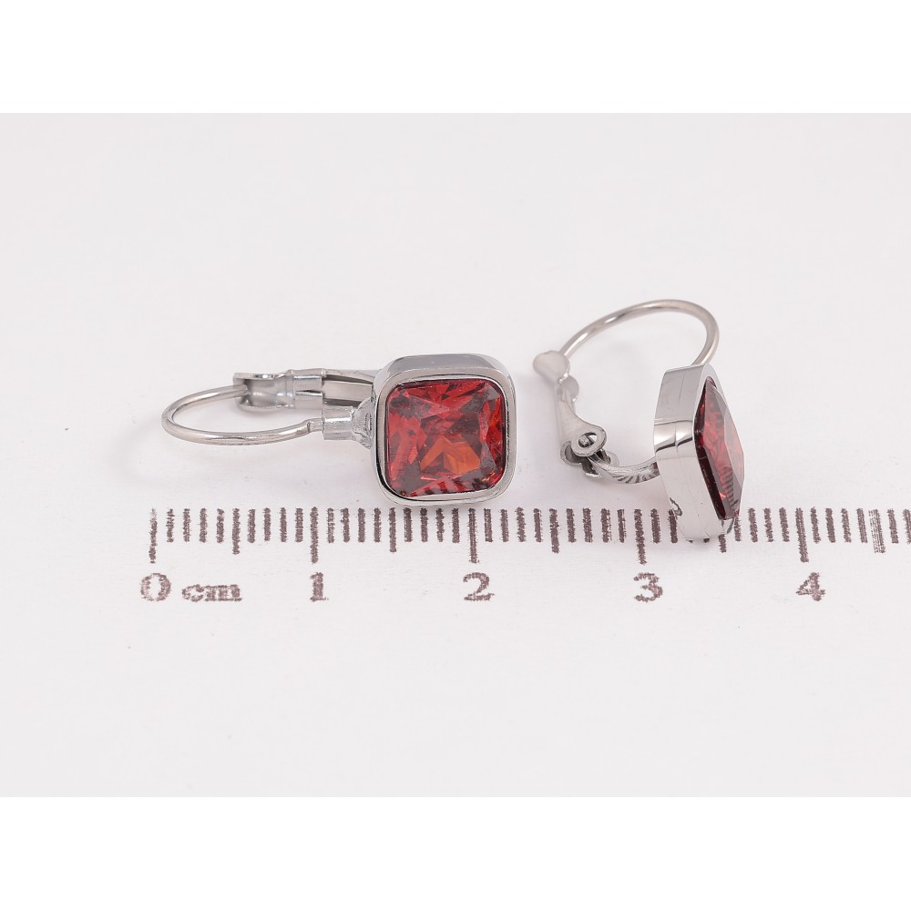 Серьги Xuping TTM Stainless Steel цвет Родий французский замок "Красные кристаллы" 9х9мм