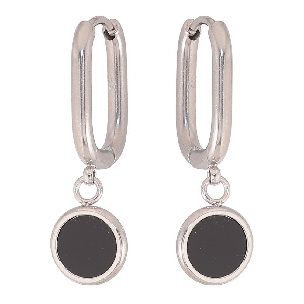 Серьги Xuping TTM Stainless Steel цвет Родий подвески на колечках "Круги с черными вставками"